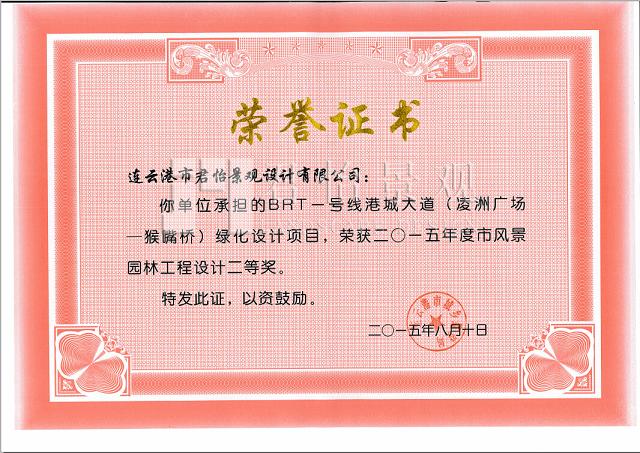 2015年獲獎(jiǎng)證書